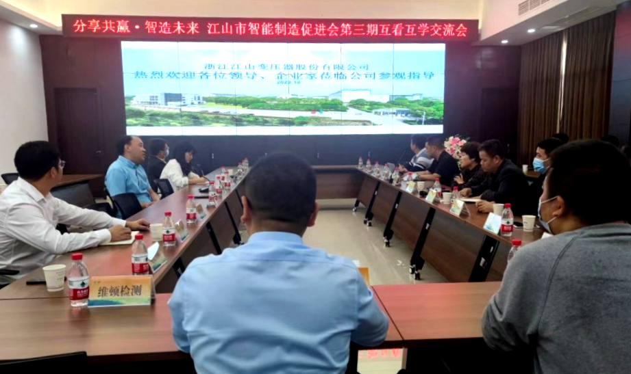 10月22日下午3點,江山市智造促進會“浙江江變•數(shù)字化轉(zhuǎn)型歷程”主題分享會,在浙江江山變壓器股份有限公司順利召開。公司總經(jīng)理在會議上對江變智能工廠建設(shè)等內(nèi)容做主要分享,江山市智造促進會秘書長、科潤智控、浙江研一、倫寶管業(yè)、三棱塑膠、實達實、開洋木業(yè)、金凱門業(yè)等近二十家會員企業(yè)代表出席會議,會議特邀江山市經(jīng)濟和信息化局、江山經(jīng)濟開發(fā)區(qū)領(lǐng)導(dǎo)。