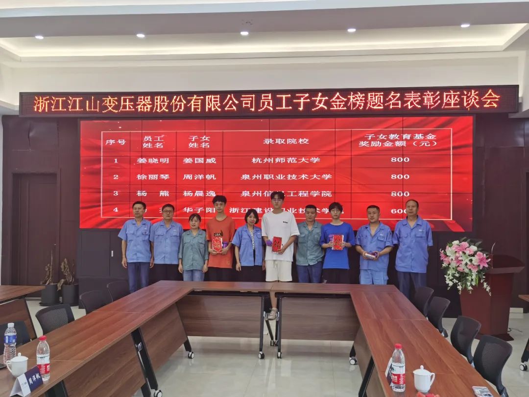 莘莘學(xué)子傳喜訊,碩果累累迎金秋。為進一步提升員工關(guān)心關(guān)愛力度,營造良好的人文氛圍。近日,浙江江山變壓器股份有限公司隆重舉行了2022年度員工子女金榜題名座談會,公司領(lǐng)導(dǎo)及員工子女、家長一同出席會議。